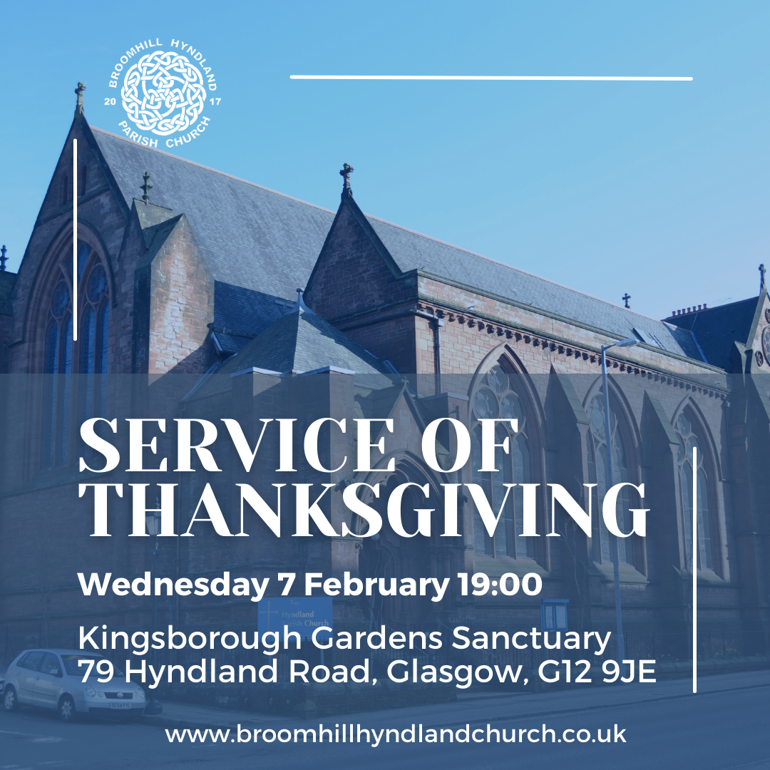 A Service of Thanksgiving is to be held this Wednesday 7 February at 7.00pm at our Kingsborough Sanctuary on Hyndland Road ahead of the new ownership of the building taking effect. This service will mark more than a century of
